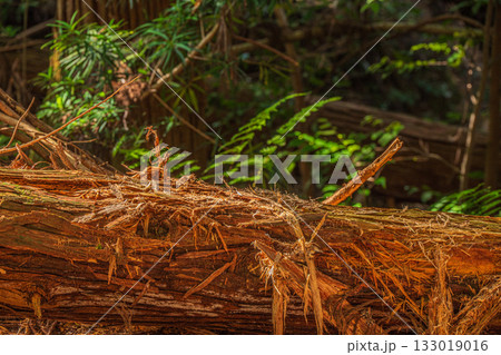 京都東山森林景色,山上倒伏著腐朽的樹木,京都市