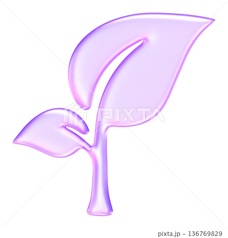 Elegant translucent leaf icon in glassmorphism style for ecology and nature concepts, Soft lavender gradient plant sprout symbolizing sustainability and environmental growth