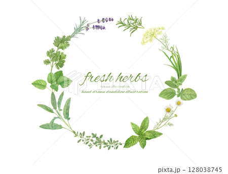 新鮮的綠色藥草園的框架裝飾。水彩插圖。