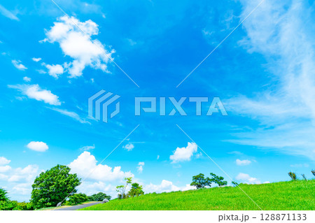 碧綠的天空延伸至富士山,夏日清爽的夢幻風景