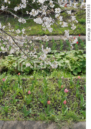 日本橫濱江川 Seseragi 綠道上的櫻花與鬱金香