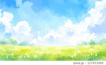 夏日天空與積雨雲交相輝映的清爽草地 1