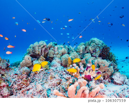 絢麗的珊瑚礁和色彩繽紛的熱帶魚群(沖繩縣卡比島、座間味島、慶良間群島、島尻郡)