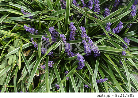 紫色的百合草皮花朵盛開。學名是Liriope muscari。