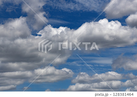 Blue sky with white clouds surrounds the globe in a bright, sunny atmosphere of nature