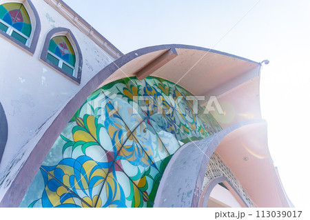 Tower on Nha Trang Cathedral or Stone Church or Christ the King Cathedral in Vietnam against blue sky background