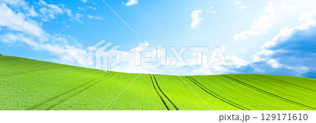 【新鮮綠色素材】綠色的麥田和藍天【長野縣】