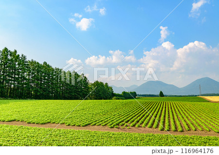 北海道美瑛鎮美瑛山初夏與美麗的藍天