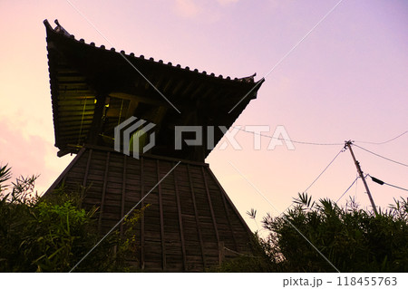 埼玉縣埼玉市岩槻市的魔法時刻(黃昏時間)天空與鐘聲的風景