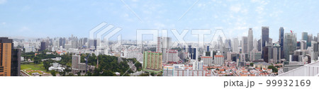 Aerial view of Amazing beautiful scenery view of Bangkok City skyline and skyscraper before sun setting.