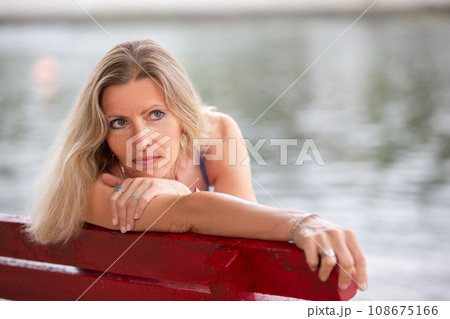 Portrait of a beautiful age blonde with a sad pensive look.