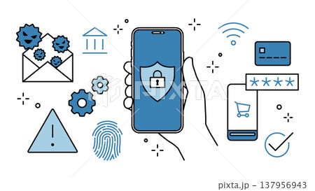 網路安全圖示集,線條粗細可調,顯示在手持的智慧型手機上。