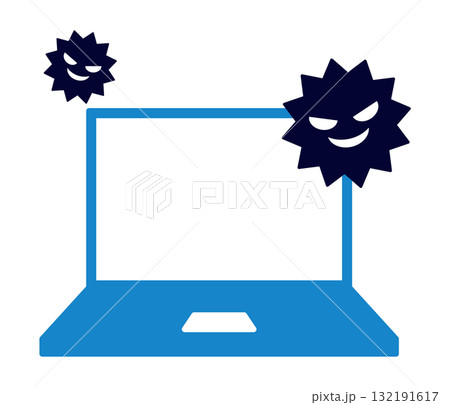 圖示:一台筆記型電腦正遭受多種病毒的攻擊