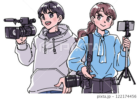 一個男人和一個女人帶著相機的插圖