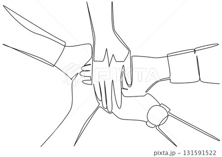 Single one line drawing several hands stacked in a circle with the heart pulse in the middle. Work team agreement. National Employee Health and Fitness Day. Continuous line design graphic illustration