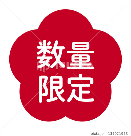 梅花插畫素材,有「數量有限」字樣,透明背景,紅色