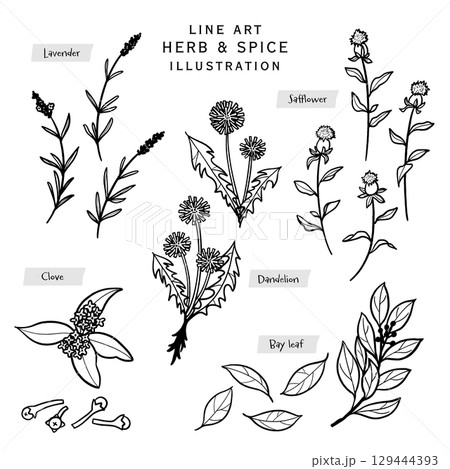 廚房香草香料線描插圖-2