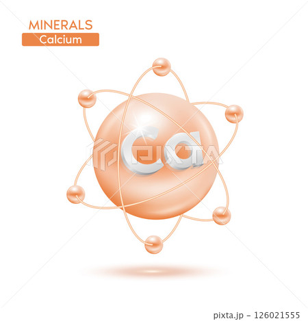 Minerals calcium atom surrounded by electrons cream. Icon 3D isolated on a white background. Medical scientific concepts. 3D Vector EPS10 illustration.