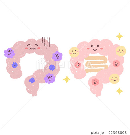 以有益細菌為主的大腸和以有害細菌為主的大腸的字符插圖集