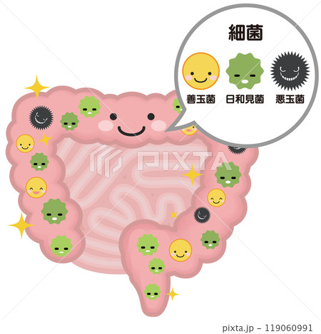 腸道中好細菌、機會細菌和壞細菌共存的插圖。