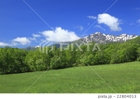 北海道富良野市草原和剩餘的雪山Ashibetsu