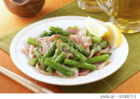 用蘆筍包裹的國產蘆筍,蘆筍培根,燒烤食品,簡便食譜。