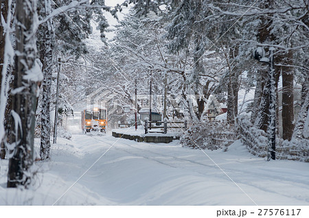 [青森縣五所川原]在津輕的雪景中行駛的火車