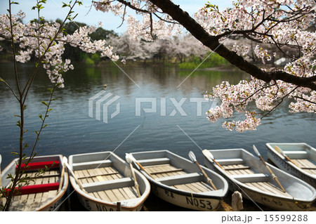 盛開的蘆野公園釣鯽魚的老人