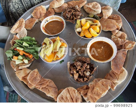 Souvenirs exhibited in market shops of the old town Nizwa. Oman. Arabian Peninsula.