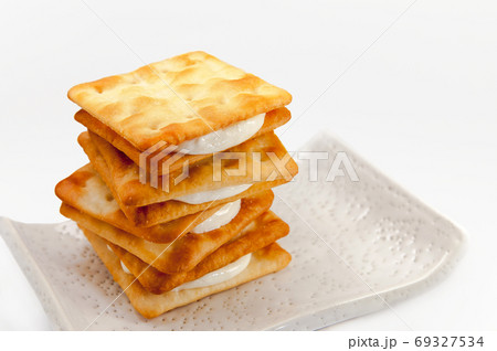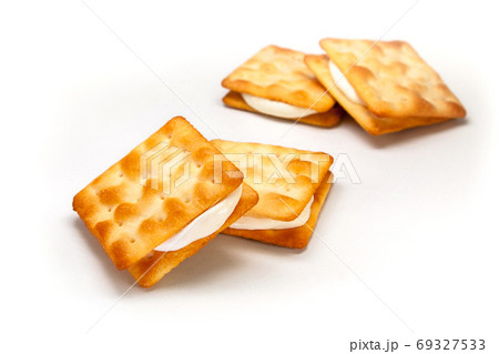 白色背景呈現美味金黃色牛軋蘇打餅特寫