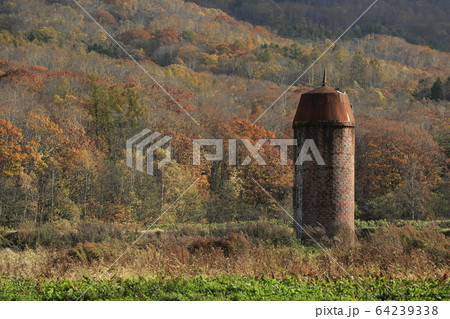 北海道蘭芝町深秋拍攝筒倉和里山風景