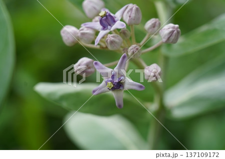 Exotic Purple Crown Flower Blossom and Buds Macro