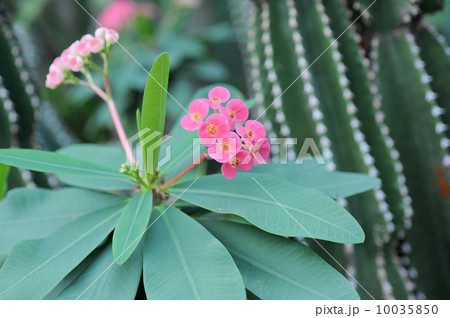 Christ Thorn, Euphorbia milii or Euphorbiaceae or pink flower