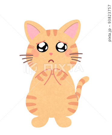 一隻貓的插圖,表情看起來像是要哭了 Uru Uru Outline = 部分實線和顏色棕色虎斑貓