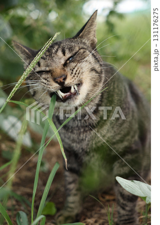 可愛的流浪貓在樹蔭下休息