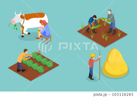 3D Isometric Flat Vector Set of Farmers