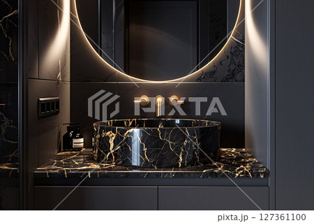 Black bathroom interior design, black marble washbasin sink in modern luxury washroom. generative ai