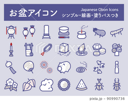 帶有線條/線條/繪畫路徑的 Obon 圖標/插圖集