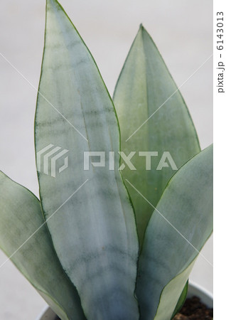 Sansevieria trifasciata Prain in gray ceramic pot.