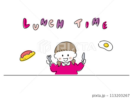 女孩吃飯的場景插畫
