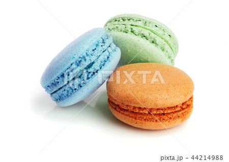 three macaroons isolated on white background closeup