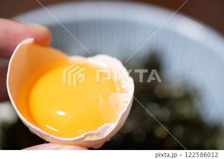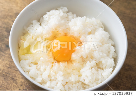 將醬油倒入生雞蛋米飯上的圖片(庫存照片)