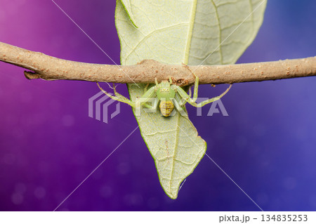 Curved Spiny Spider on the leaves in the forest