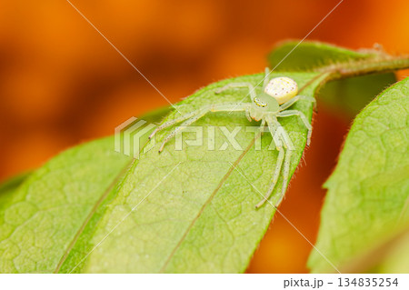 Small yellow spider baby on a green leaf close up world of the macro photograph
