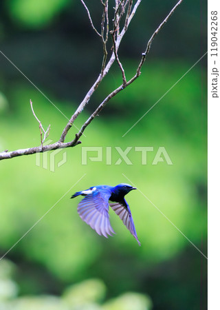 藍色的幸福之鳥,可愛的藍翅鶲(鶲科)。 位於日本東京文京區小石川植物園。 2024年新