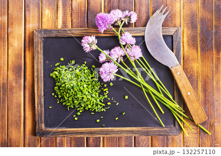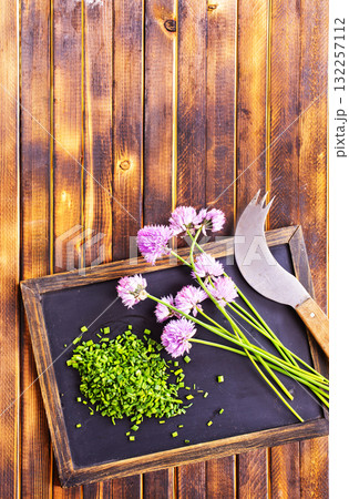 Curative violet chives flower blooming