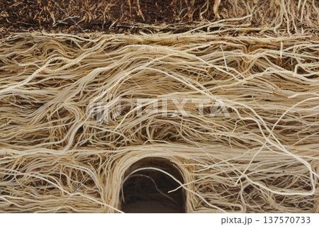 Macro view of chives roots in soil