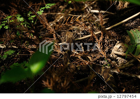 一條蝮蛇靜靜地潛伏在河岸上