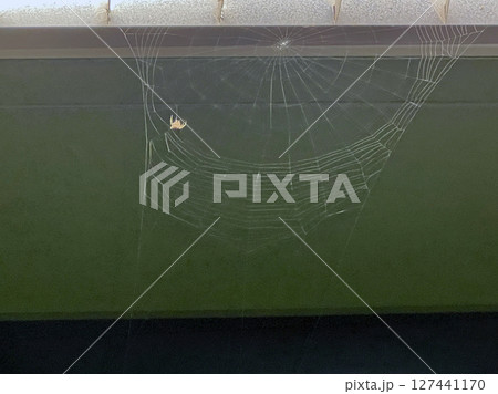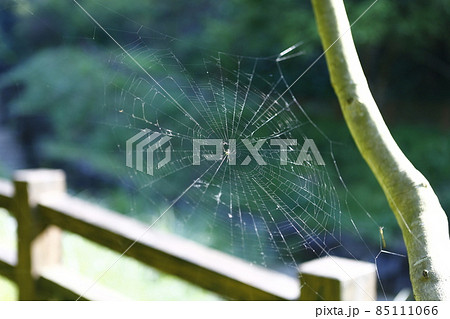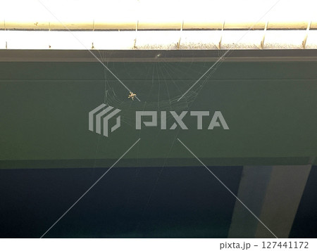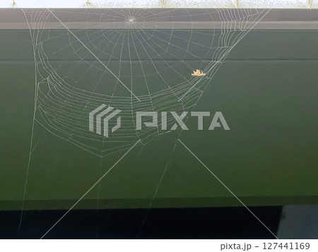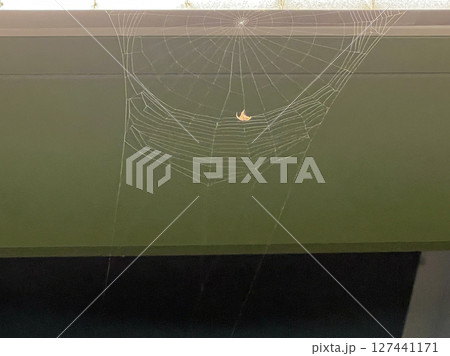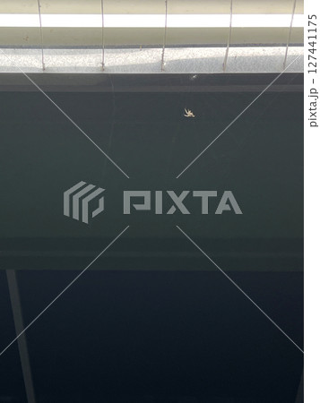 在戶外的燈光下拍攝一隻白蜘蛛結網的過程
