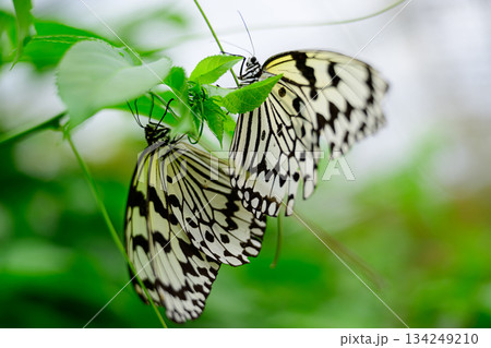 Beautiful butterfly to green leaf in in Ban Krang Camp, Kaeng Krachan National Park in Thailand.